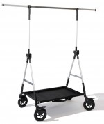 Hang On hat sein Produktportfolio erweitert und bietet Ihnen ein neues hochprofessionelles Tool zur Produktpräsentation im Laden, im Showroom oder unterwegs bei der Kollektionsvorlage. Der Rolling Jones ist leicht, stabil und höchst funktional. Seine großen Räder sprechen für sich. Aluminium, Stahl und hochwertige Kunststoffe verbinden sich zu einem topmodernen Produkt, dass höchsten Ansprüchen genügt.